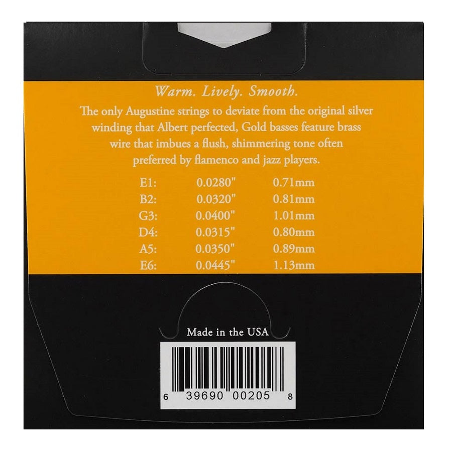 Setul Augustine AUCLGO Classic Gold este conceput pentru chitariștii care doresc un sunet cald, expresiv și ușor de controlat. Combinația dintre corzile înalte cu tensiune normală și basurile cu tensiune ușoară, placate cu alamă oferă un echilibru rafinat între claritatea melodiilor și profunzimea armoniilor, fiind ideal atât pentru începători, cât și pentru interpreți avansați.