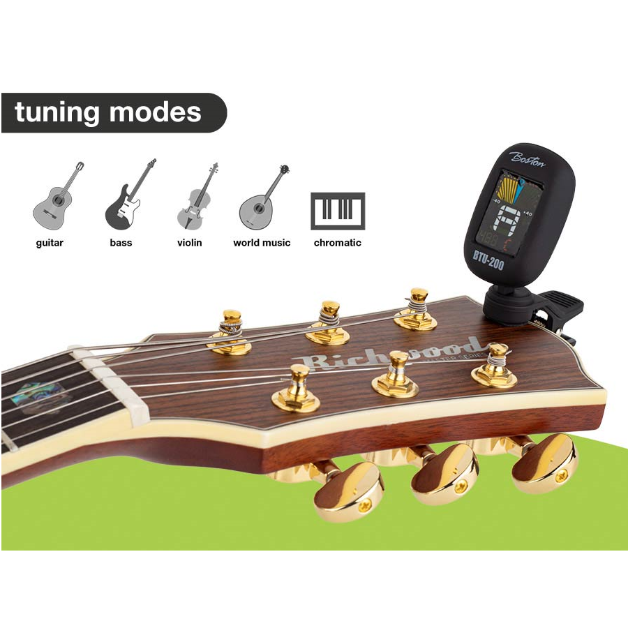 Boston BTU200 este un acordor cromatic compact și precis, proiectat pentru a răspunde nevoilor chitariștilor și instrumentiștilor de toate nivelurile. Dotat cu un ecran color clar și luminos, acesta oferă o vizibilitate excelentă în orice condiții – fie pe scenă, fie în sala de repetiții.