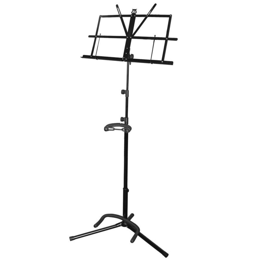 Suport Combinat pentru Chitară și Partituri, Metalic, Negru, Pliabil, cu Reținere pentru Partituri