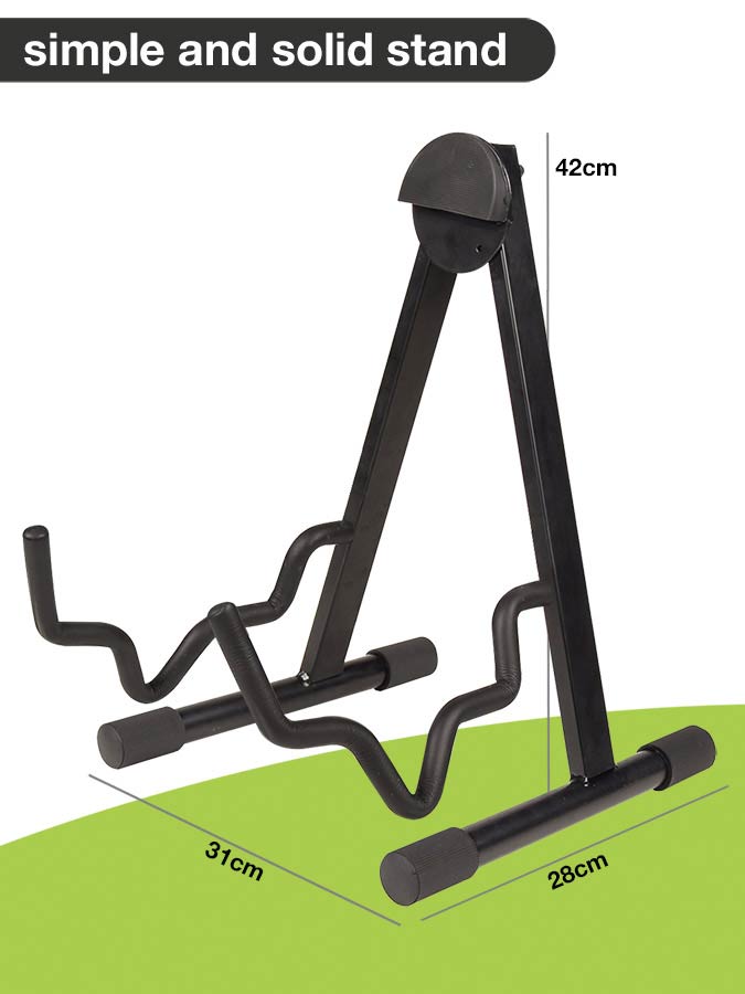 Construit din metal solid, suportul garantează o durată de viață îndelungată, iar forma de tip A asigură echilibru și susținere sigură. Datorită designului semi-pliabil, suportul se depozitează și se transportă cu ușurință, fiind perfect atât pentru acasă, sală de repetiții, cât și pe scenă.