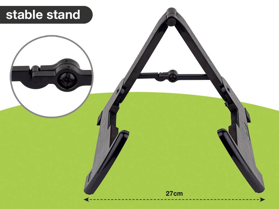 Boston GS450 este un stand universal pliabil, conceput pentru a oferi stabilitate și siguranță unei game variate de instrumente cu coarde. Cu un design tip A robust și compact, acest stand combină durabilitatea cu portabilitatea, fiind ideal atât pentru utilizarea acasă, cât și pe scenă sau în studio.