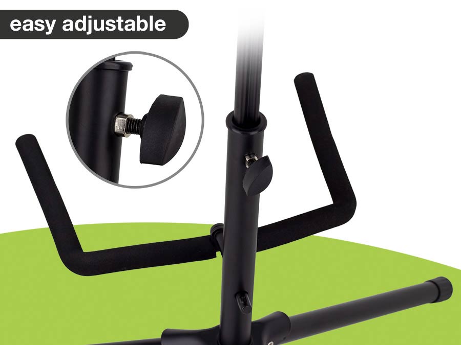 Boston GS49BK este un stand universal pentru chitară, apreciat pentru stabilitate, durabilitate și portabilitate. Designul său pliabil îl face ușor de transportat și depozitat, fiind potrivit atât pentru acasă, cât și pentru scenă sau studio.