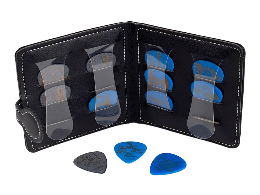 Portofel cu 12 Pene de Chitară, PVC Negru, Celuloid, Modele Asortate