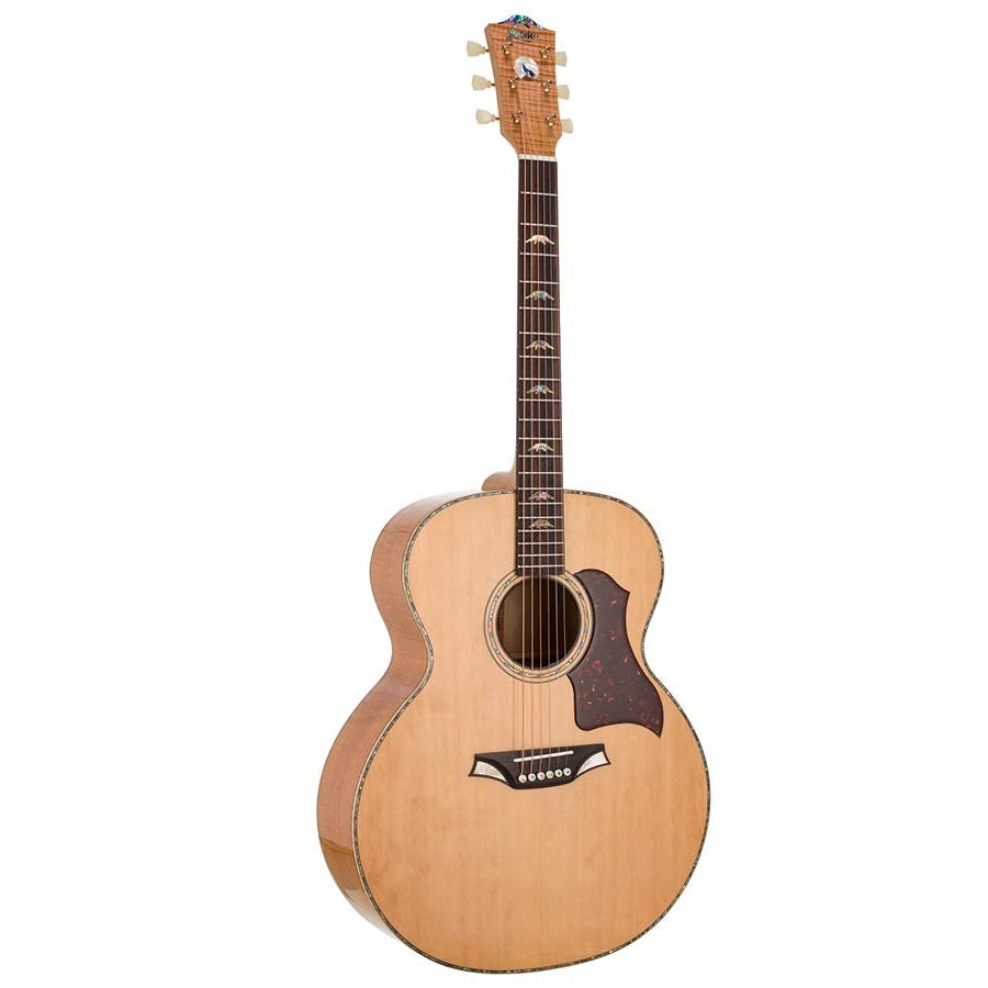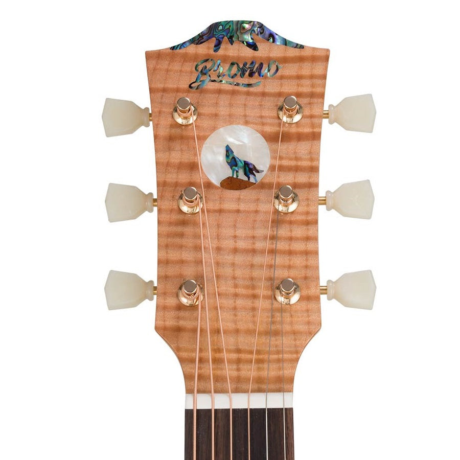 Sistemul patentat ToneFlow Bracing permite o rezonanță superioară și o dinamică extinsă, potrivindu-se perfect muzicienilor care caută un instrument expresiv și puternic. Gâtul trece direct prin corp, fiind realizat din arțar cu întărituri din Amara ebony, ceea ce oferă stabilitate excepțională și sustain amplu. Tastiera din Amara ebony oferă o atingere moale și precisă, în timp ce detaliile estetice – rozeta „Cowboy Rope”, logo-ul Mt. Bromo și motivele unice „Howling Wolf” – conferă chitarei o personalitate distinctă.
