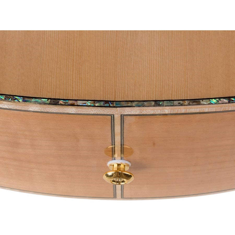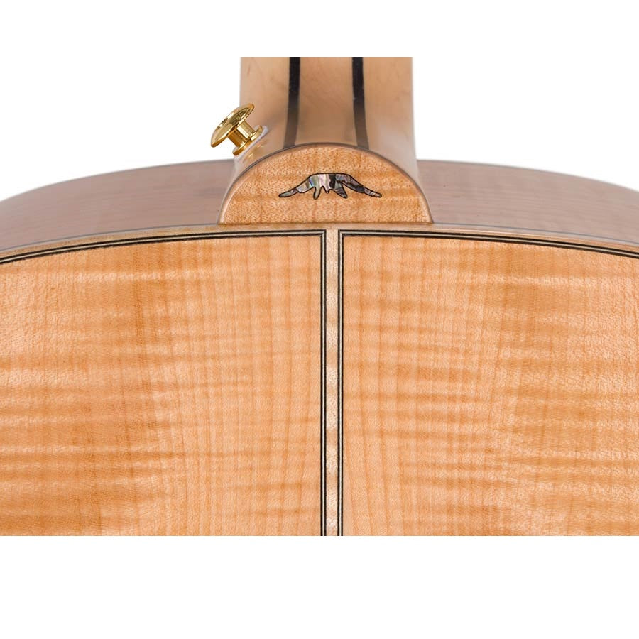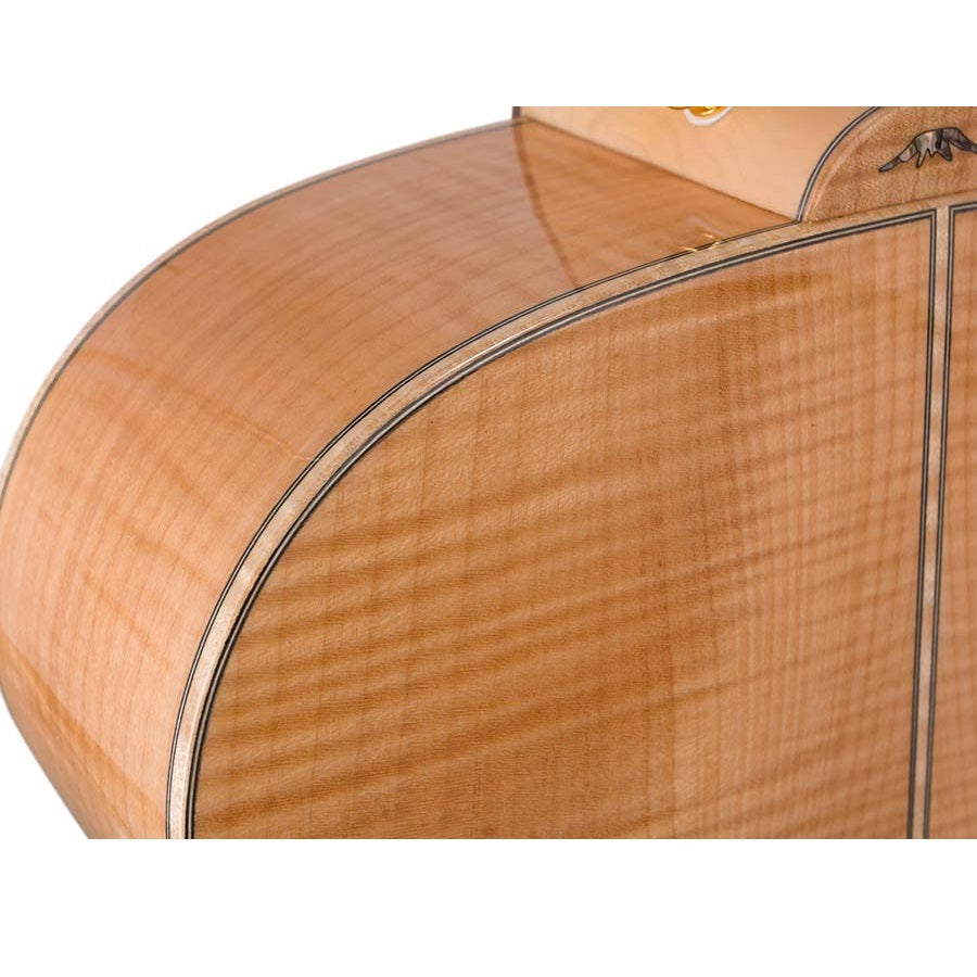 Cu o față din molid solid și corp din arțar flamed stratificat, BAN7E oferă un ton clar, vibrant și echilibrat, cu o proiecție impresionantă și armonice luminoase. Lemnul de arțar conferă profunzime și definiție, în timp ce finisajul lucios din poliuretan evidențiază textura spectaculoasă a fibrei.