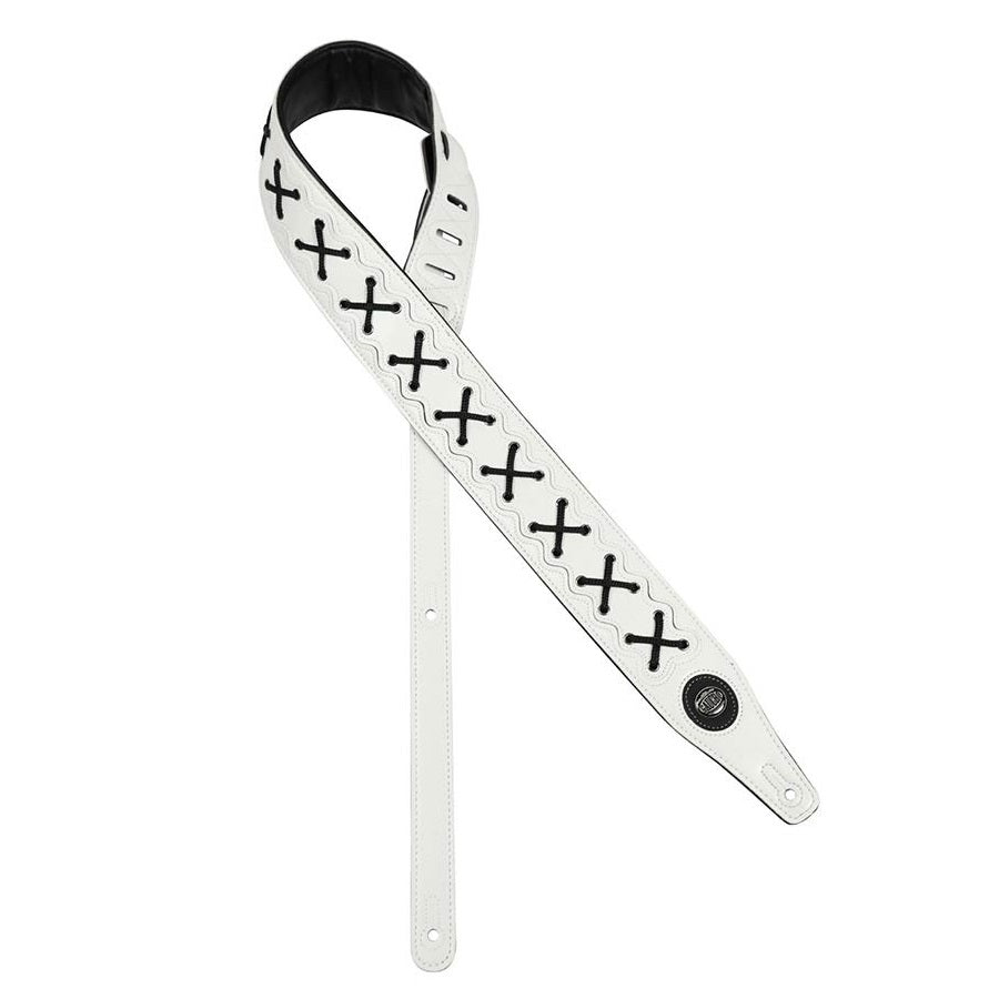 Gaucho GST648WH Curea chitară, albă, piele, detalii șiret