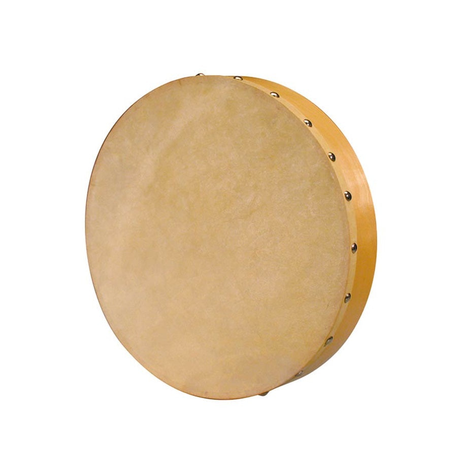 Corpul este realizat din lemn masiv cu finisaj natur, oferind stabilitate și rezonanță excelentă, în timp ce fața din piele naturală crudă asigură un sunet cald, profund și expresiv, bogat în armonice.