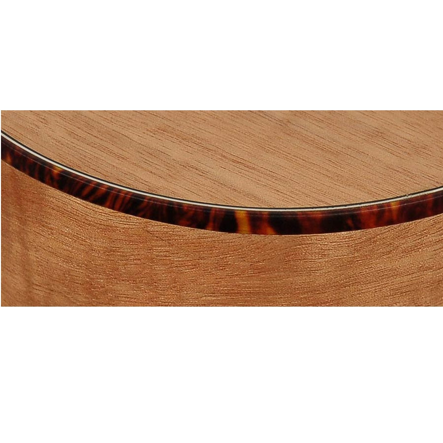 Corpul complet din okoume flamed oferă nu doar o estetică spectaculoasă, ci și un ton cald și deschis. Decorul cu binding de tip carapace de țestoasă și rozeta din abalon accentuează eleganța instrumentului, conferindu-i un aspect premium. Fiecare detaliu este finisat cu grijă, rezultând un instrument plăcut la atingere și impecabil vizual.