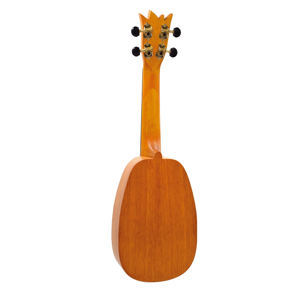 Corpul este decorat cu un superb model de ananas gravat cu laser, simbol al ospitalității și bucuriei tropicale. Finisajul natur lasă vizibilă fibra lemnului, oferind instrumentului o notă elegantă și autentică.