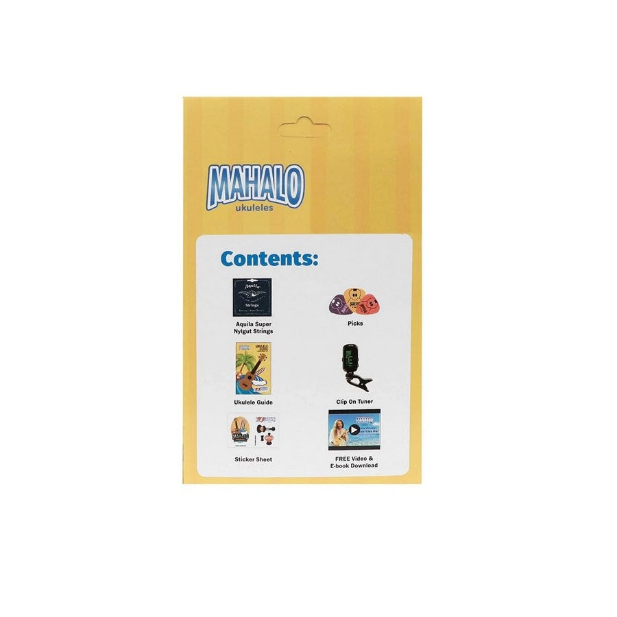 Setul Mahalo MK1TBR Pro include tot ce ai nevoie pentru a începe imediat: ukulele, husă de protecție și un pachet complet de accesorii, toate livrate într-o cutie colorată de cadou.