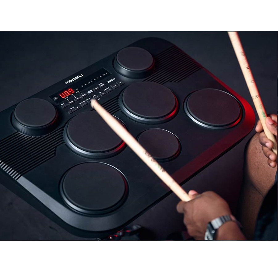 Medeli DD221 este alegerea perfectă pentru cei care caută un set de tobe electronic compact, educativ, distractiv și conectiv — ideal pentru acasă, studio mic sau exersat în liniște cu căști.
