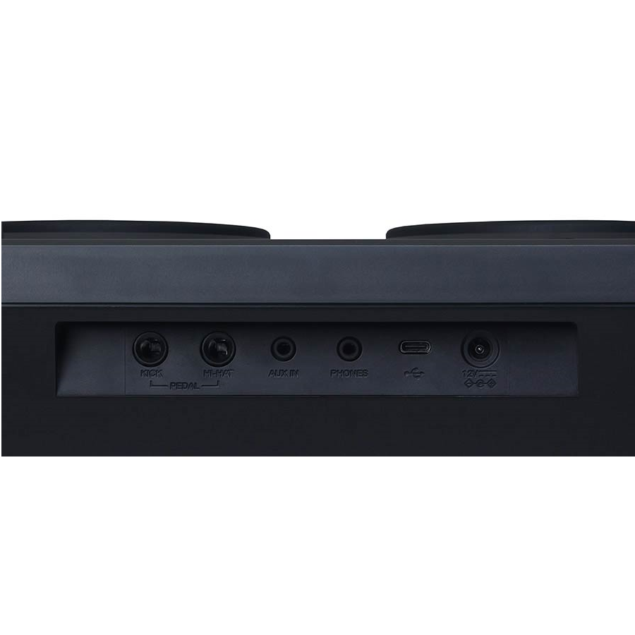 Cele 7 pad-uri din cauciuc, sensibile la intensitatea loviturii, răspund natural la dinamica interpretării, oferind senzația apropiată de un set real de tobe. Pedalele robuste pentru kick și hi-hat, prevăzute cu bază antiderapantă, oferă stabilitate și control precis în timpul cântatului.