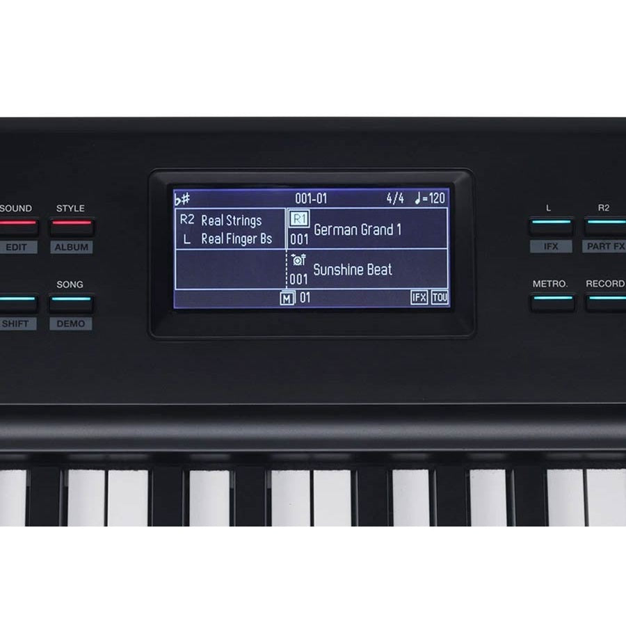 Conectivitate: 2 căști (1/4”, 1/8”), Aux In, 2 Line Out, USB (host/device), MIDI In/Out, Bluetooth Audio & MIDI, pedale (sustain, expression, soft)