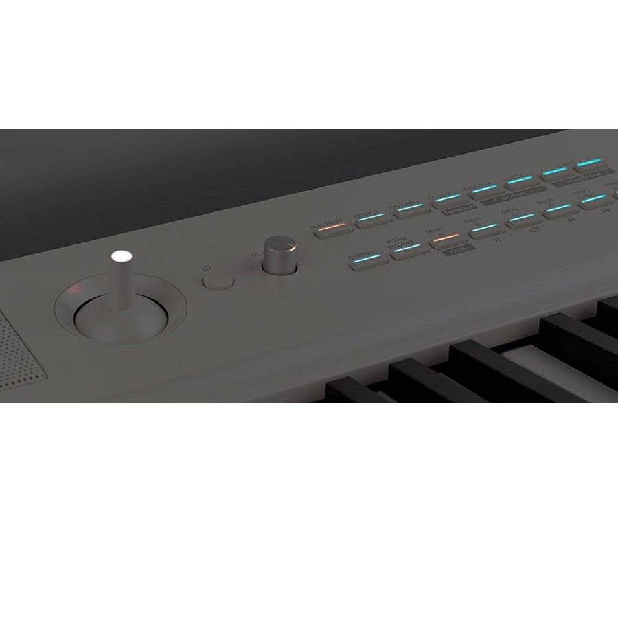 Sistemul audio integrat, format din 4 difuzoare (2 x 16x7 cm + 2 x 3 cm) și o amplificare totală de 4 x 23 W, redă un sunet bogat și clar, potrivit atât pentru repetiții, cât și pentru spectacole live. Pianul vine inclus cu o pedală sustain de calitate, completând un set de funcții profesionale într-un format portabil.