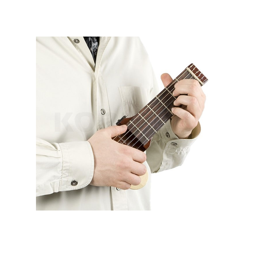 Tastatura din lemn de trandafir fin reproduce fidel primele șase taste (frets) ale unei chitare clasice de concert, oferind senzația reală a unui instrument complet. Corpul este fabricat din mahon, iar corzile din nailon au o tensiune reglabilă individual, permițând o adaptare perfectă la preferințele fiecărui chitarist.