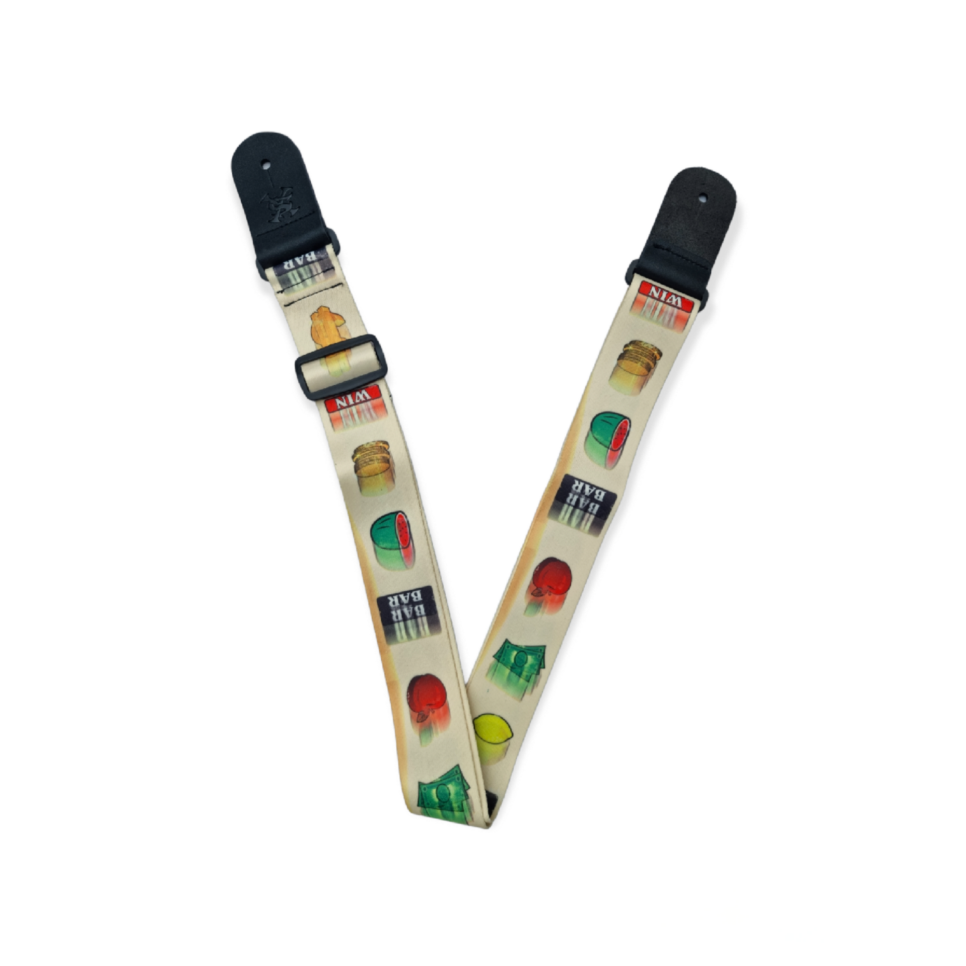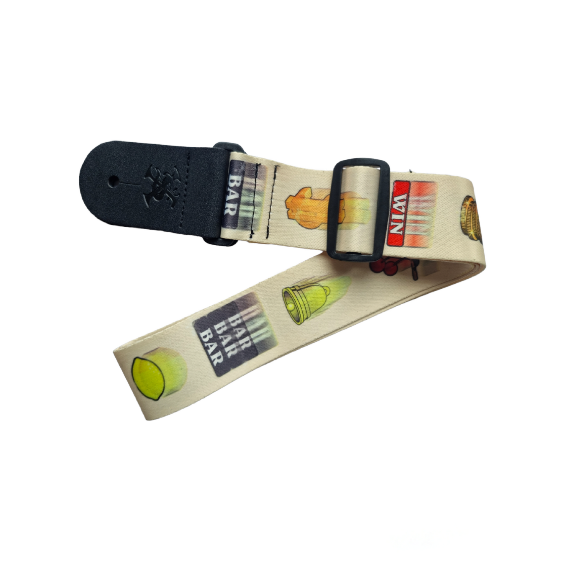 Tema grafică „Jackpot” adaugă un element vizual distinctiv, transformând această curea într-un accesoriu expresiv, potrivit muzicienilor care apreciază combinația dintre funcționalitate și personalitate vizuală.