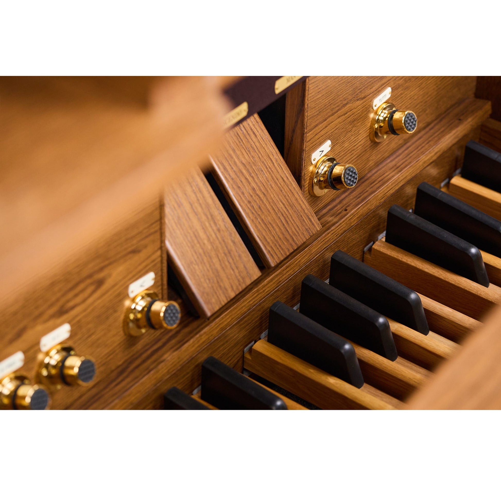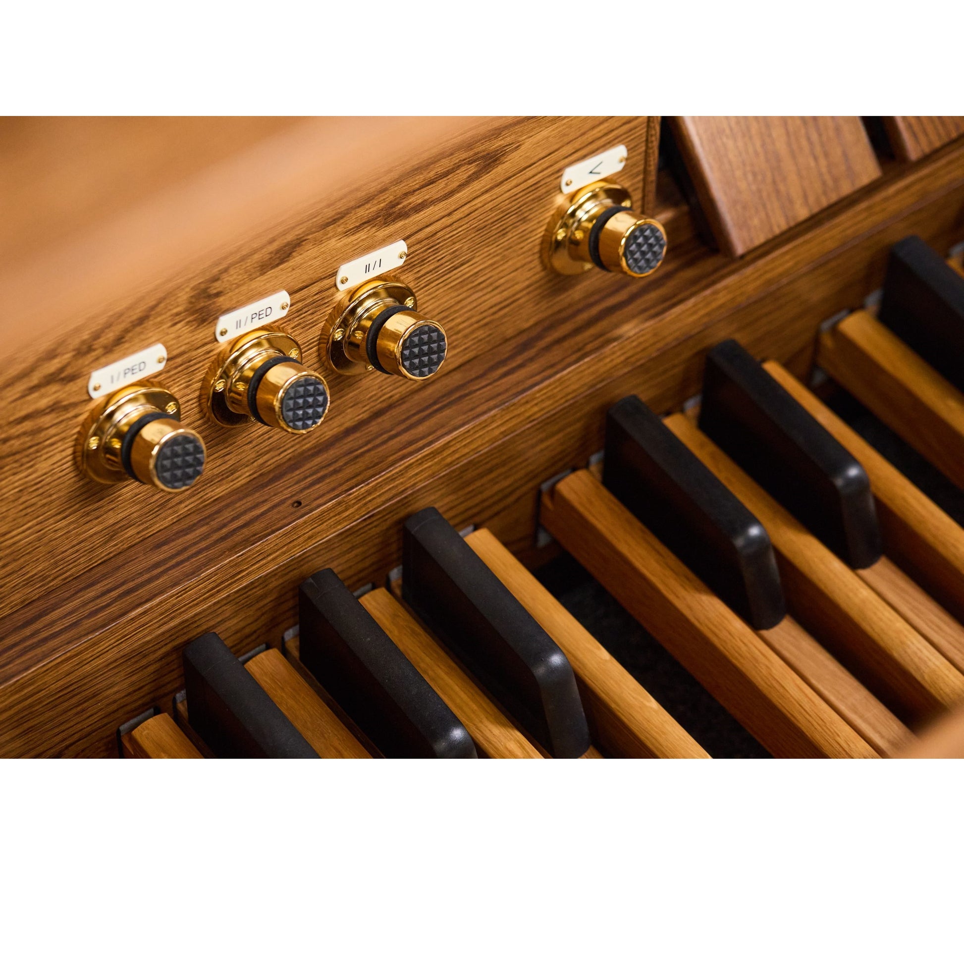 Designul ergonomic al comutatoarelor, draw-knob-urilor și pistonașelor este gândit pentru reacție rapidă și confort maxim în timpul interpretării. Panoul lateral cu afișaj dedicat și comenzi integrate oferă acces intuitiv la toate funcțiile și opțiunile de personalizare.